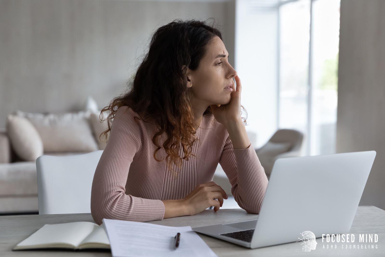 Until recently, evidence for emotional instability as a symptom of ADHD has been largely anecdotal. However, current research has demonstrated that emotional dysregulation is a core feature of ADHD. In fact, Dr. Thomas Brown, explains that people with ADHD usually report that “momentary emotion gobbles up space in their head,” blocking them things prioritizing or staying on track. A young woman with curly brown hair, wearing a pink sweater, sits at a desk, resting her chin on her hand and gazing out of a window. This could represent issues with motivation that ADHD and emotional regulation can help you address. Learn more about ADHD emotional regulation Columbus, OH and how a Columbus ADHD therapist can help.