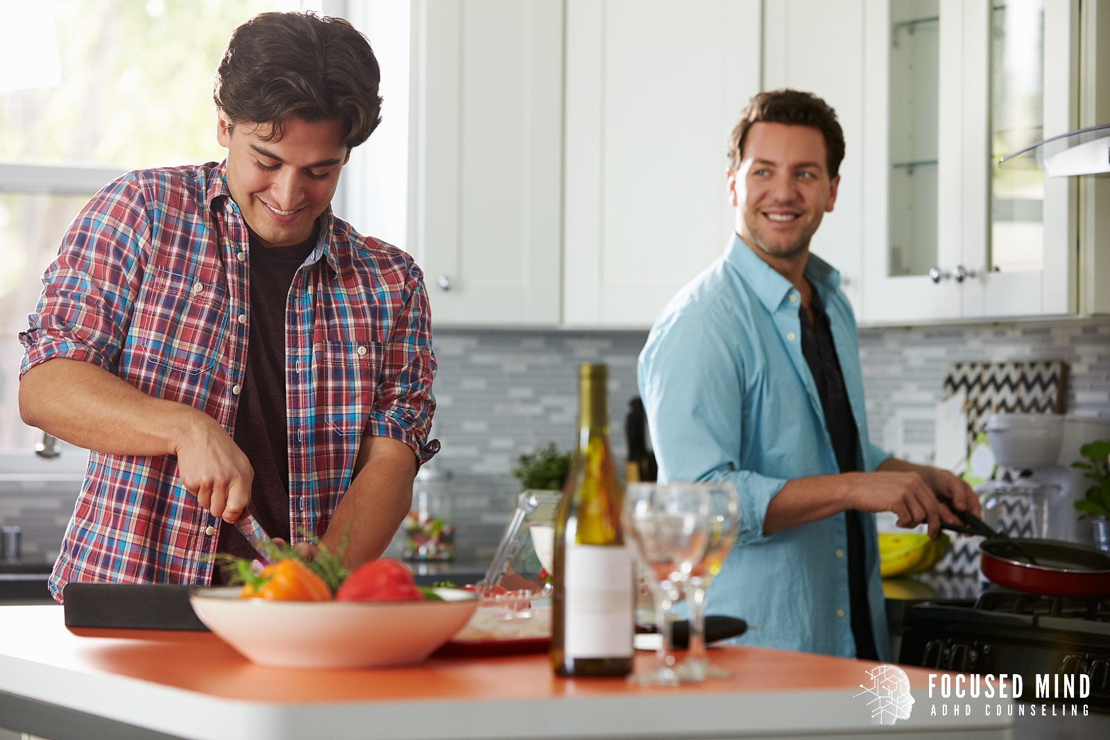 ADHD brains have a hard time filtering out new information. It’s not only what their partners are saying, it’s sensory input from the environment overloading them. If a non-ADHD partner is trying to talk about something with a lot of steps (finances, meal prep, kids’ schedules), they should be sure to speak in short and direct sentences to decrease overwhelm in the ADHD partner. This also increases the chance the ADHDer will hear, understand, and act on their words. A caveat…don’t talk down to your partner. This tip just means to understand that if you’re in a rush or speaking quickly, something might go overlooked. So just slow down a bit.