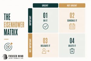 The Eisenhower Matrix is a simple way to manage tasks. Some tasks you might avoid, so do them right now. You can then schedule others for future time blocks. Another option is delegation. While this might feel impossible for many people with ADHD, in reality, delegation can take many forms. Delegation shows up in everyday ways, using TurboTax, assigning your kids chores, or asking for help. While it can feel uncomfortable at first, it’s a powerful strategy for adults with ADHD.