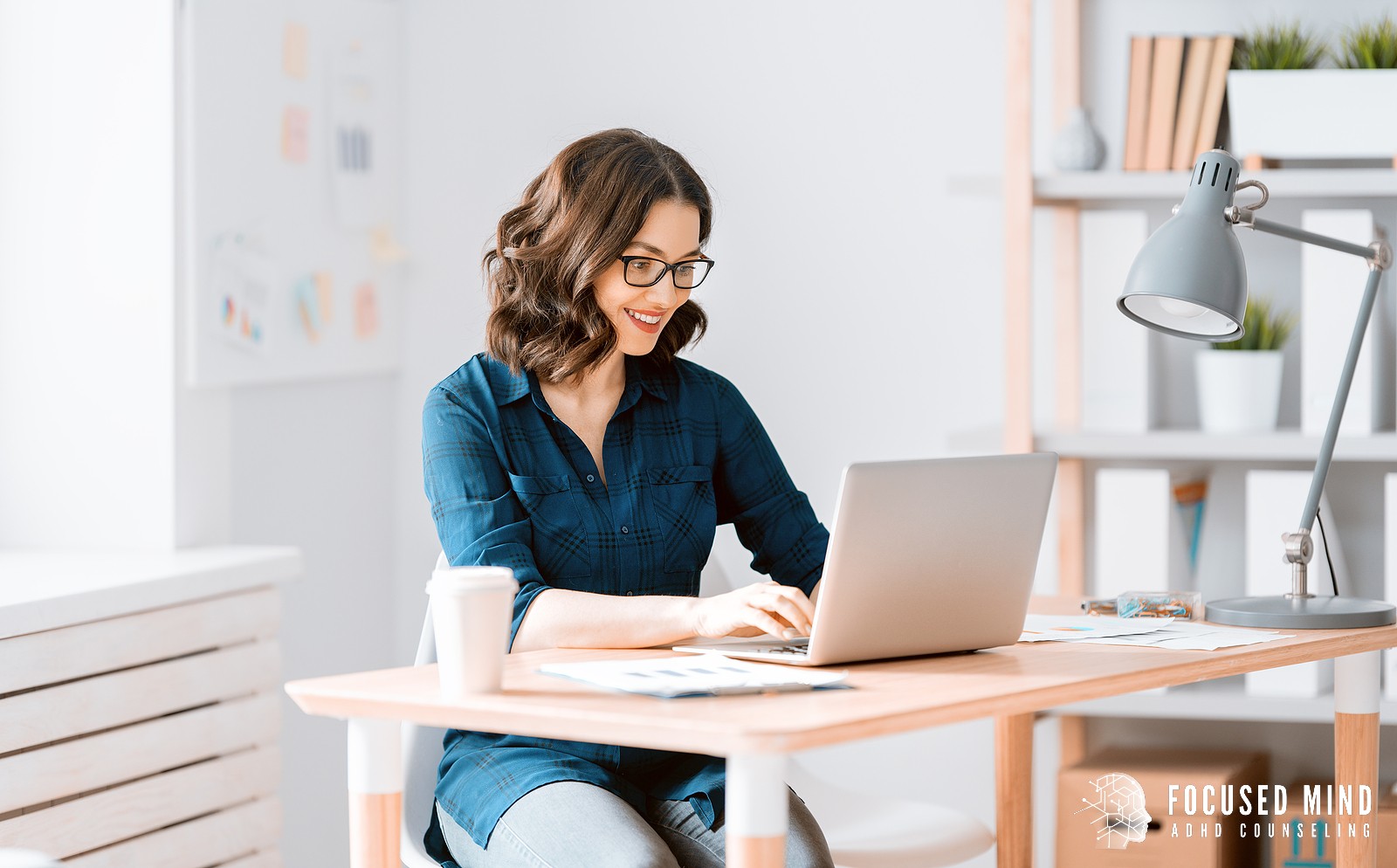 No More “Multitasking”A smiling woman types on her laptop as she sits at her desk. This could represent the beneifts of ADHD productivity hacks that Focused Mind ADHD Counseling can teach. Learn more about your ADHD superpowers, and how an adult ADHD therapist in Columbus, OH can help you! 43017 | 43220  | 43235