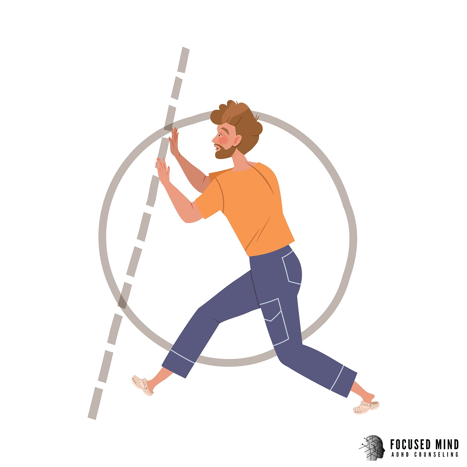 A graphic of a person creating boundaries in the form of a circle and dotted line. Learn how Focused Mind ADHD Counseling can help you set better boundaries. An ADHD therapist for adults near me can offer support for ADHD and boundaries in Columbus, OH today.Time blindness.