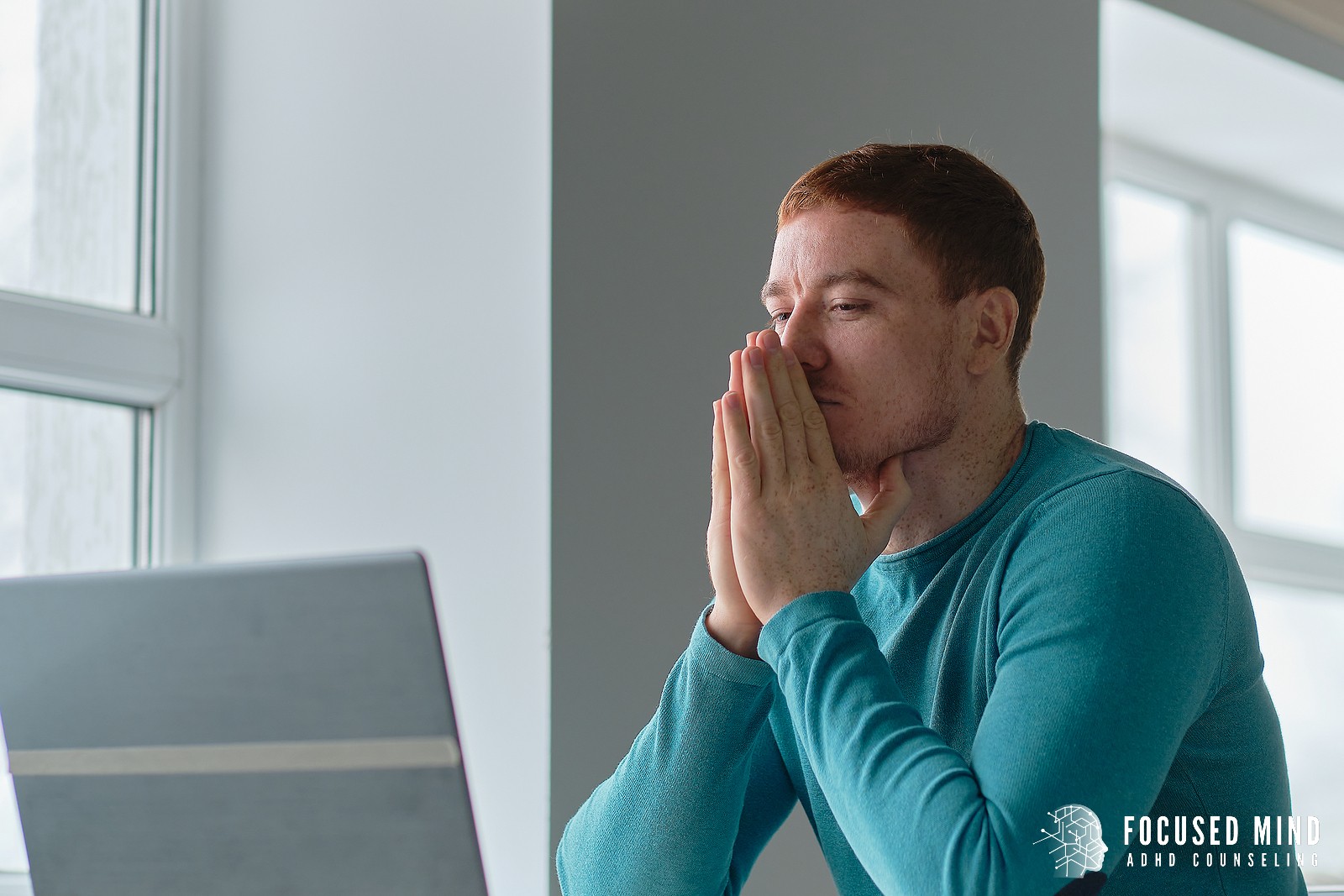 Symptoms of Depression A man sits in front of their laptop while holding their hands against their mouth. A therapist in Columbus Ohio can help adults overcome rejection sensitive dysphoria. Learn more about adult attention deficit hyperactivity disorder treatment in Ohio by contacting Focused Mind ADHD Counseling.