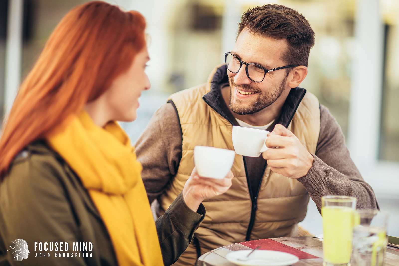 A smiling man and woman smile at one another while toasting their coffee cups. A therapist in Columbus Ohio can help you overcome feelings of rejection. Contact Focus Mind ADHD Counseling to learn more about online therapy in Columbus, Ohio and other services. Wait, aren’t those all different issues? Imposter syndrome, toxic shame, etc….those are all connected to RSD?