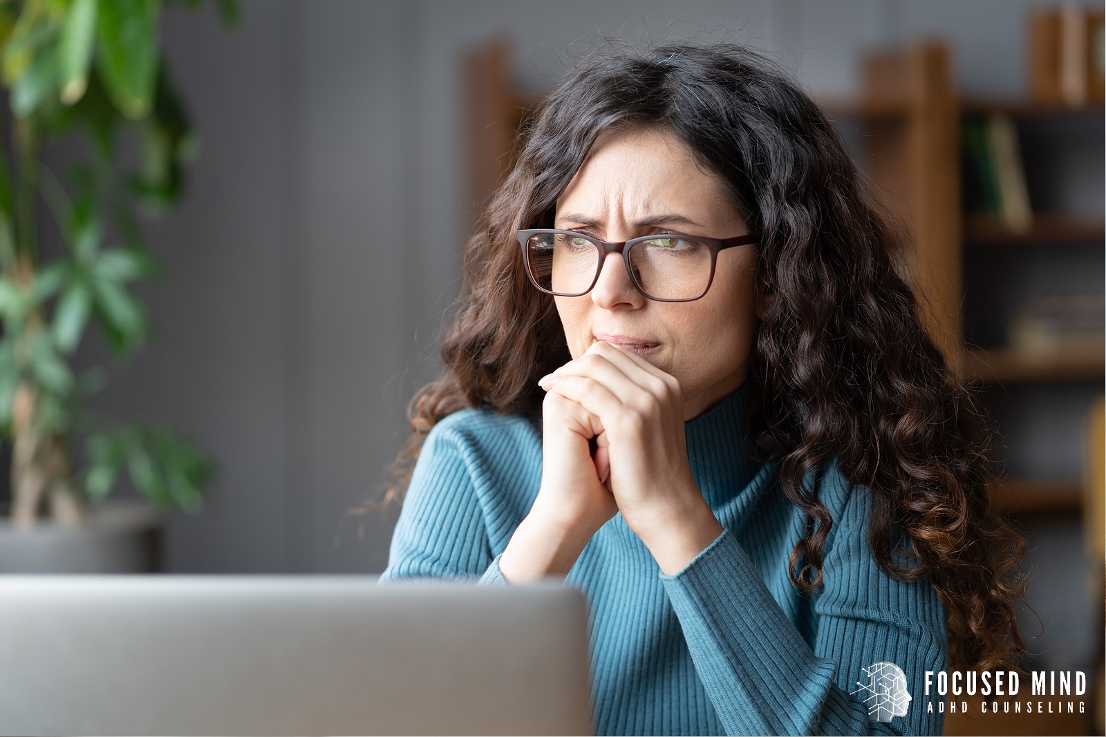 ADHD Myth #3: “I’ve been in therapy for years, wouldn’t someone have noticed by now?”A woman sits in front of a laptop with a concerned expression. A therapist in Columbus Ohio can offer support in managing ADHD symptoms. Learn more about ADHD and emotional regulation as well as ADHD testing in Columbus, OH. Focused Mind ADHD Counseling can offer support today.
