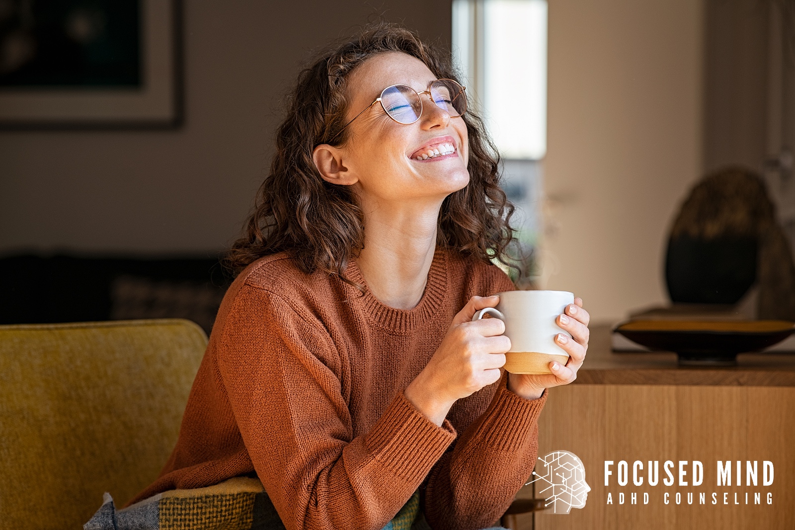It’s not uncommon to hear someone say, “I’m just a perfectionist.” However, with ADHD, perfectionism can develop as anWoman relaxing on a couch with a warm drink, practicing coping skills for anxiety symptoms columbus, oh. With anxiety therapy in columbus, oh and guidance from a columbus adhd therapist, adhd and anxiety in adults columbus, oh can feel more manageable.initial coping strategy to catch missed details, avoid mistakes, and prevent negative feedback. Over time, the need to be “perfect” can become an impairment, sometimes requiring extra time to complete tasks, try around potential mistakes, and, in some cases, excessive anxiety, “analysis paralysis” that prevents someone from starting anything at all. CBT helps challenge the thought patterns behind these behaviors and often includes gentle exposure work to build tolerance for mistakes and uncertainty.